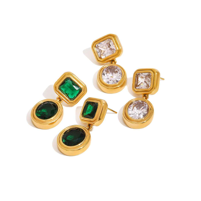 Add a touch of radiance to your look with the Aurora Earrings — a blend of sophistication and modern charm. Featuring dual-cut crystals framed in 18K PVD gold, these statement drops catch the light beautifully with every move. Perfect for elevating both your day and evening style.