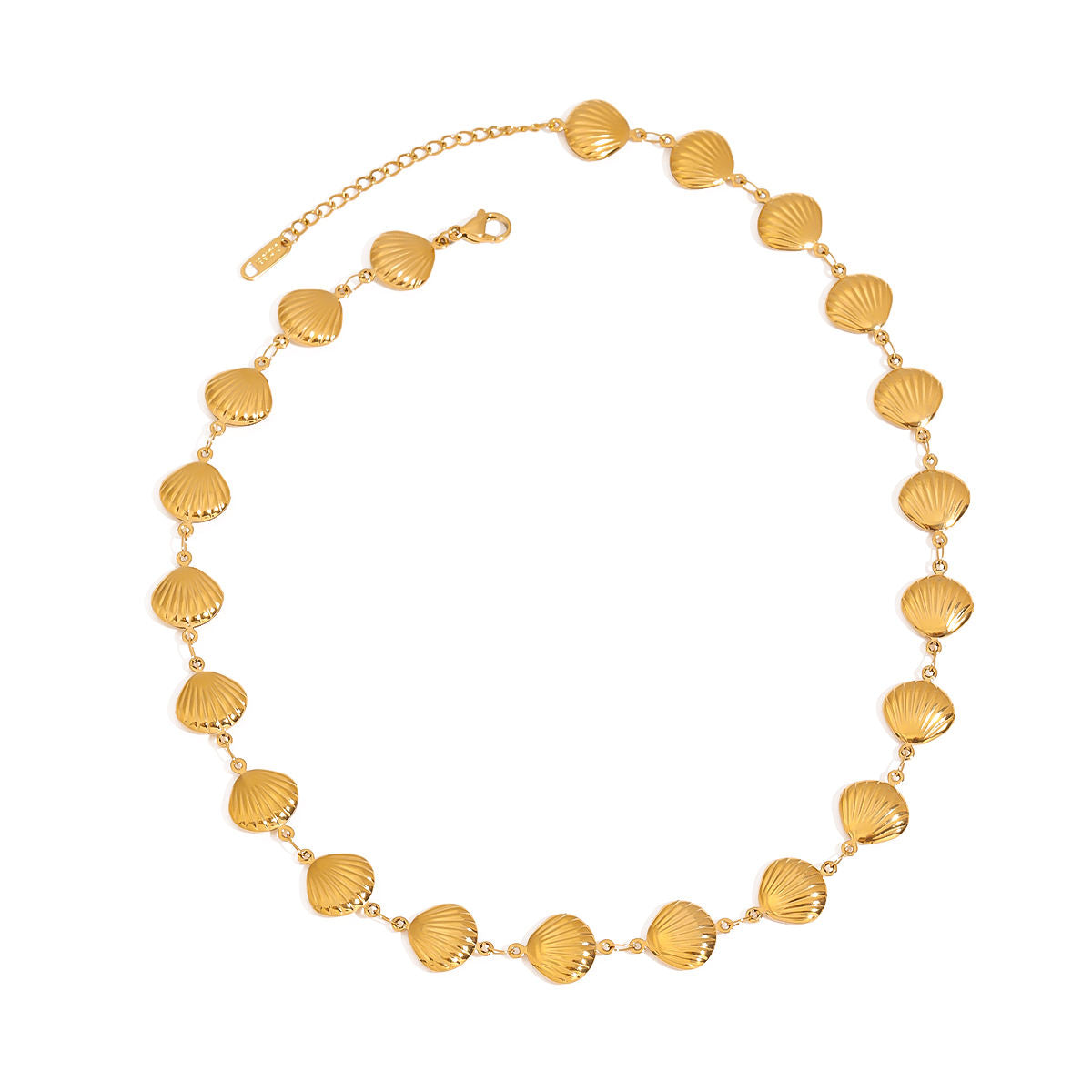 The Calista Necklace radiates effortless sophistication with its polished gold shell motifs — a reminder of sunny days, serenity, and the beauty of nature’s rhythm. It evokes feelings of calm and confidence, perfect for elevating both casual and elegant looks. Style it with a white linen top or an off-shoulder dress to let its golden glow shine.