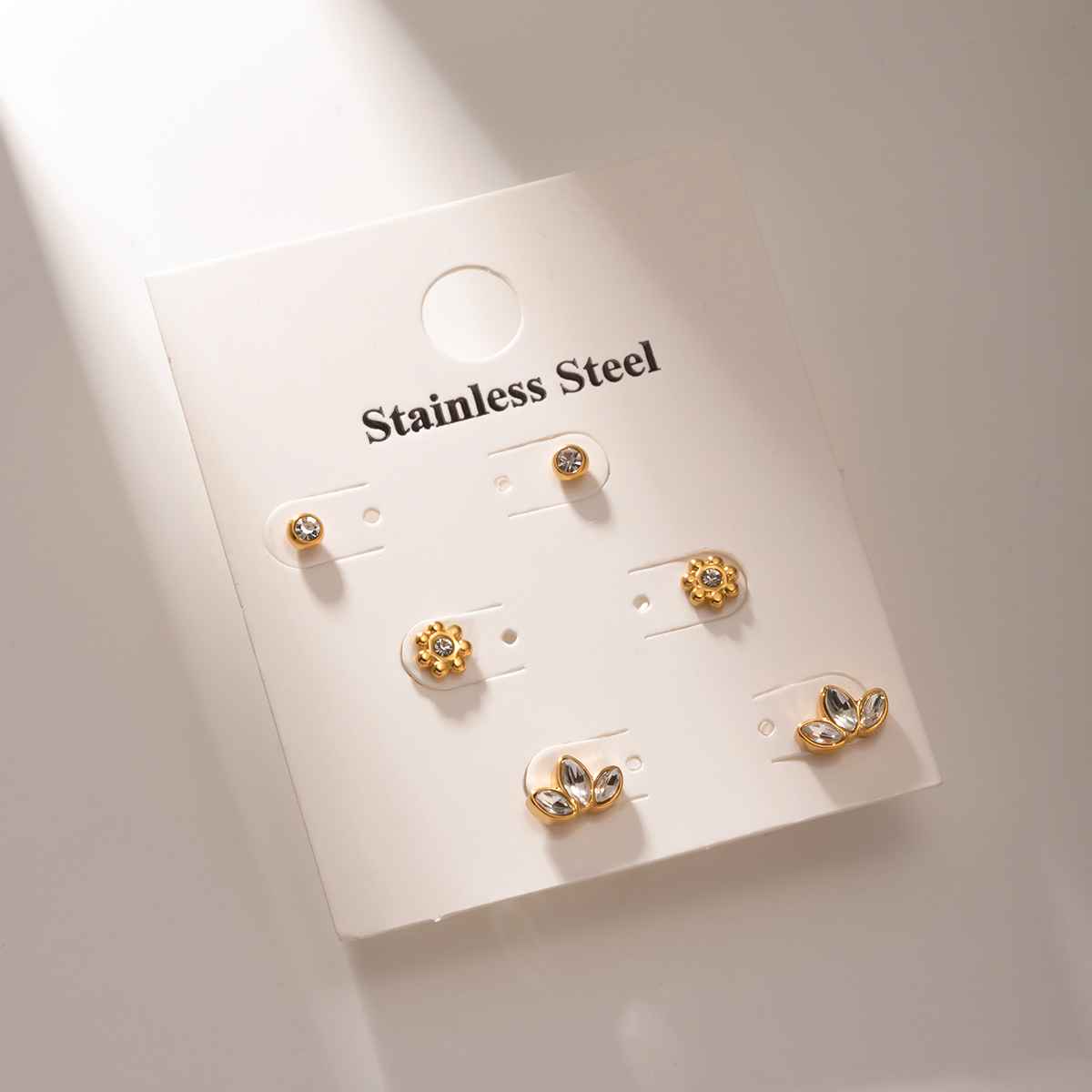 The Cassy Earrings Set embodies effortless elegance with a touch of sparkle. Featuring three versatile designs—classic crystal studs, dainty floral details, and modern marquise shapes—each pair captures confidence and charm for every mood. Style them solo for subtle sophistication or mix and match for a playful, layered ear look that shines all day.