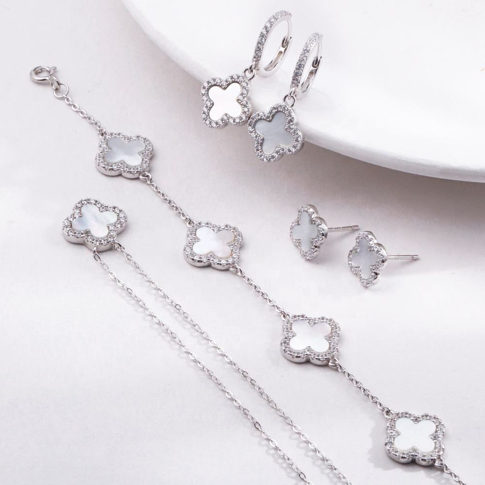 Material: Crafted from pure S925 Sterling Silver, designed with Mother of Pearls and embellished with Zirconia stones, carefully polished and coated with an anti-tarnish finish to maintain its brilliant shine for years to come.