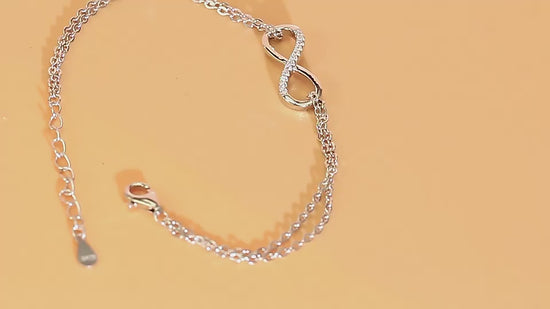 This elegant 925 sterling silver bracelet features a delicate infinity symbol that represents endless love and connection. Its dual-chain design adds a modern touch, while the adjustable extension ensures a perfect fit. Lightweight, timeless, and meaningful — a perfect everyday piece or heartfelt gift.